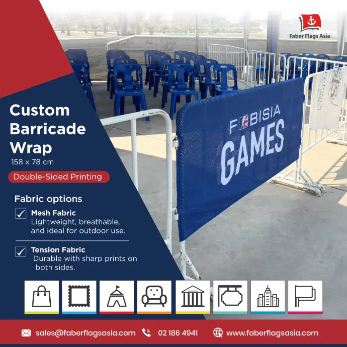 Choose from multiple fabric options, various sizes, single or double-sided printing, and professional finishing styles to create a setup that fits your brand and space perfectly.